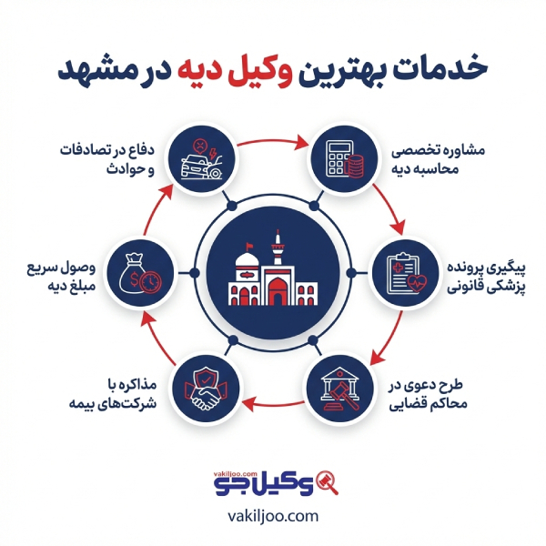 برای سهولت در انتخاب بهترین وکیل دیه در مشهد و دسترسی به سایر خدمات حقوقی مورد نیاز، توصیه میشود صفحات مرتبط را نیز بررسی فرمایید. لینکهای زیر میتوانند راهنمای مناسبی در این زمینه برای شما باشند.