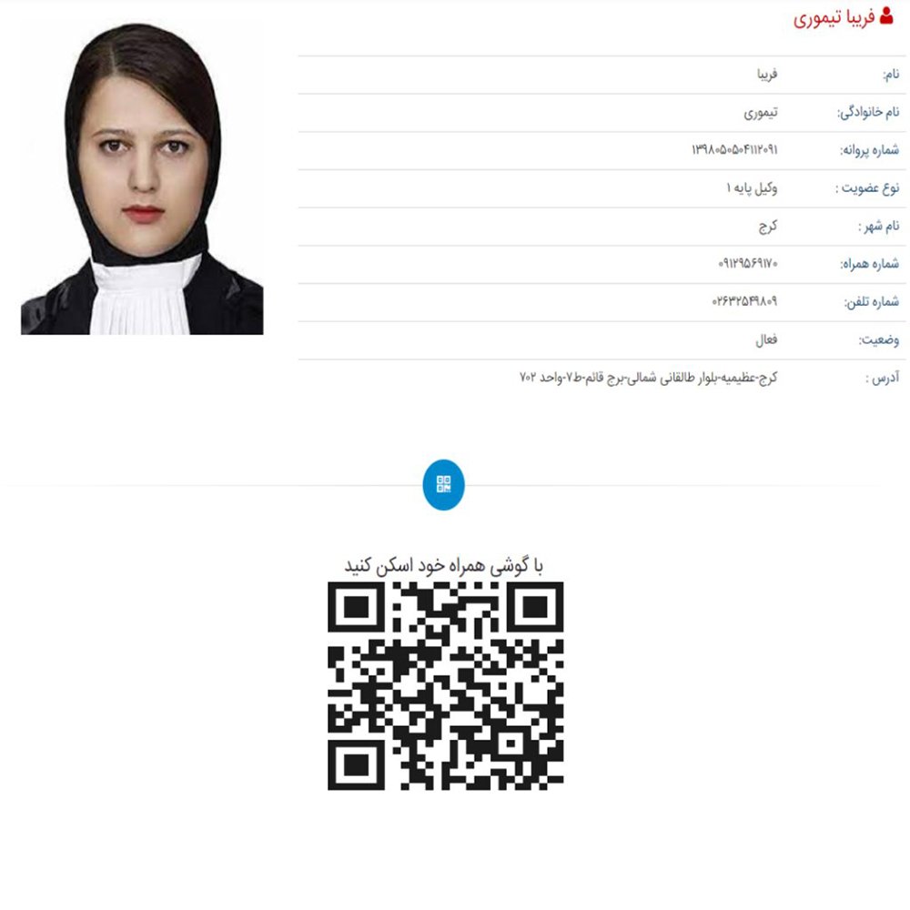 خانم فریبا تیموری، وکیل پایه یک دادگستری کرج و فارغالتحصیل حقوق از دانشگاه شهید بهشتی، یکی از وکلای برجسته با تجربهای درخشان در دعاوی حقوقی، کیفری، ملکی و خانواده است. ایشان با تخصص ویژه در طلاقهای توافقی و دعاوی ملکی، بهعنوان یک مشاور حقوقی مطمئن در کرج و تهران شناخته میشوند. تیموری با برخورداری از دانش عمیق و تبحر در حل مسائل پیچیده، توانسته است درصد بالای پیروزی در پروندهها را برای موکلین خود به ارمغان بیاورد.