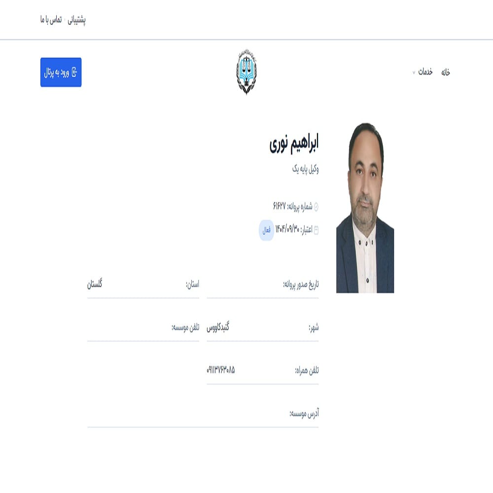 آقای ابراهیم نوری، وکیل پایه یک دادگستری و مشاور حقوقی، با سابقهای ارزنده در امور اجرایی و علمی، از چهرههای حقوقی شناختهشده محسوب میشوند. ایشان سابقه ریاست در مرکز قوه قضاییه و همکاری با دفتر حمایت حقوقی ایثارگران را در کارنامه دارند و در کنار وکالت، در حوزه آموزش دانشگاهی نیز فعال بودهاند. همچنین، ارائه مشاوره حقوقی بهصورت آنلاین از جمله خدمات نوین و قابلدسترسی ایشان است.