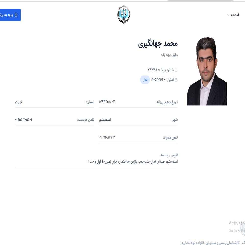 محمد جهانگیری از وکلای مجرب و موفق در حوزه کیفری در اسلامشهر است که با تسلط بالا بر قوانین جزا و پیگیری دقیق پروندهها، اعتماد بسیاری از موکلان را جلب کرده است. ایشان با رویکرد حرفهای، بررسی دقیق مستندات و ارائه دفاعیات مؤثر در دادگاه، نقش کلیدی در موفقیت پروندههای کیفری ایفا کردهاند. دانش حقوقی عمیق و برخورد مسئولانه از نقاط قوت کاری اوست.