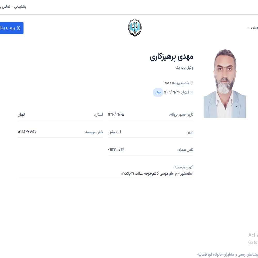 مهدی پرهیزکاری از وکلای توانمند در اسلامشهر است که با تخصص در پروندههای کیفری و سابقه موفق در دفاع از حقوق موکلان، مورداعتماد بسیاری قرار گرفته است. او با تسلط بالا بر قوانین جزا و دقت در پیگیری امور، همواره در مسیر تحقق عدالت گام برمیدارد. دفاع حرفهای در دادگاه و ارائه مشاورههای کاربردی، از ویژگیهای بارز عملکرد اوست.