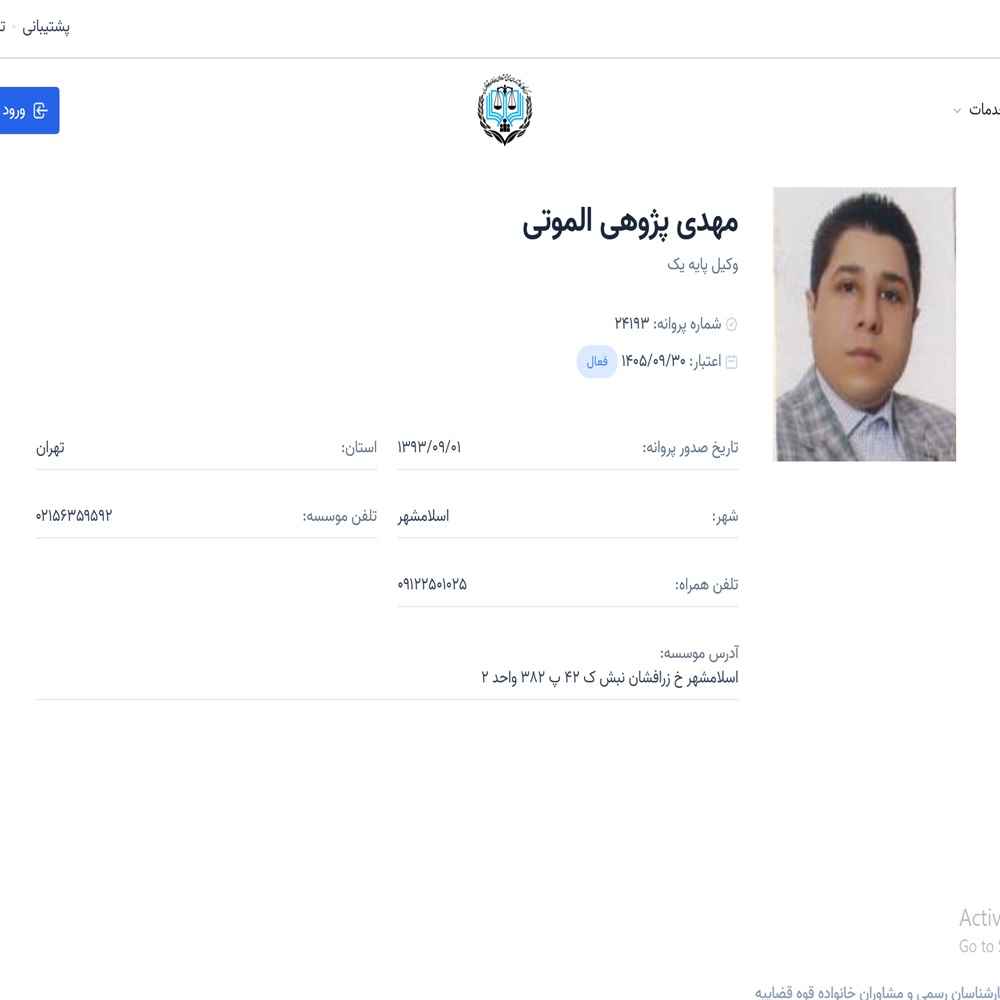 مهدی پژوهی الموتی از وکلای باتجربه و توانمند در حوزه کیفری در اسلامشهر است. با تسلط کامل بر قوانین جزایی و تجربه موفق در پروندههای پیچیده، ایشان توانستهاند نتایج مطلوبی را برای موکلان خود رقم بزنند. دقت در بررسی پروندهها، دفاع حرفهای در دادگاه و تعهد بالا، از ویژگیهای برجستهی کاری ایشان محسوب میشود.