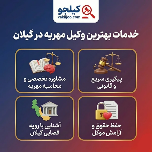 مجله وکیل جو بهعنوان یکی از منابع معتبر در حوزه حقوق و وکالت، با بررسی دقیق سوابق، تخصص و تجربه وکلا، امکان انتخاب آگاهانه و مطمئن را برای کاربران فراهم میکند. در ادامه، با لیستی از بهترین وکلای مهریه در گیلان آشنا خواهید شد تا بتوانید با اطمینان کامل وکیل مناسب خود را انتخاب کنید.