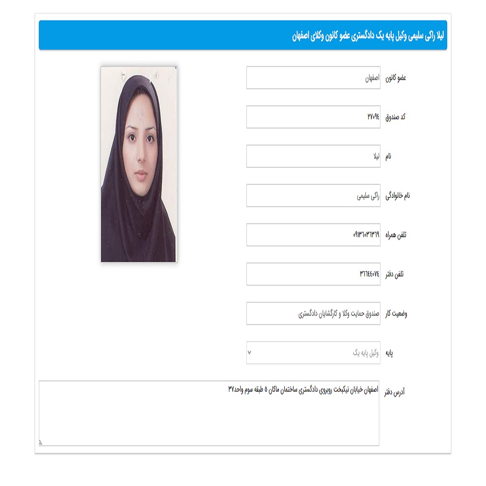 | وکیل لیلا راکی | خیابان نیکبخت | 09136036369 |