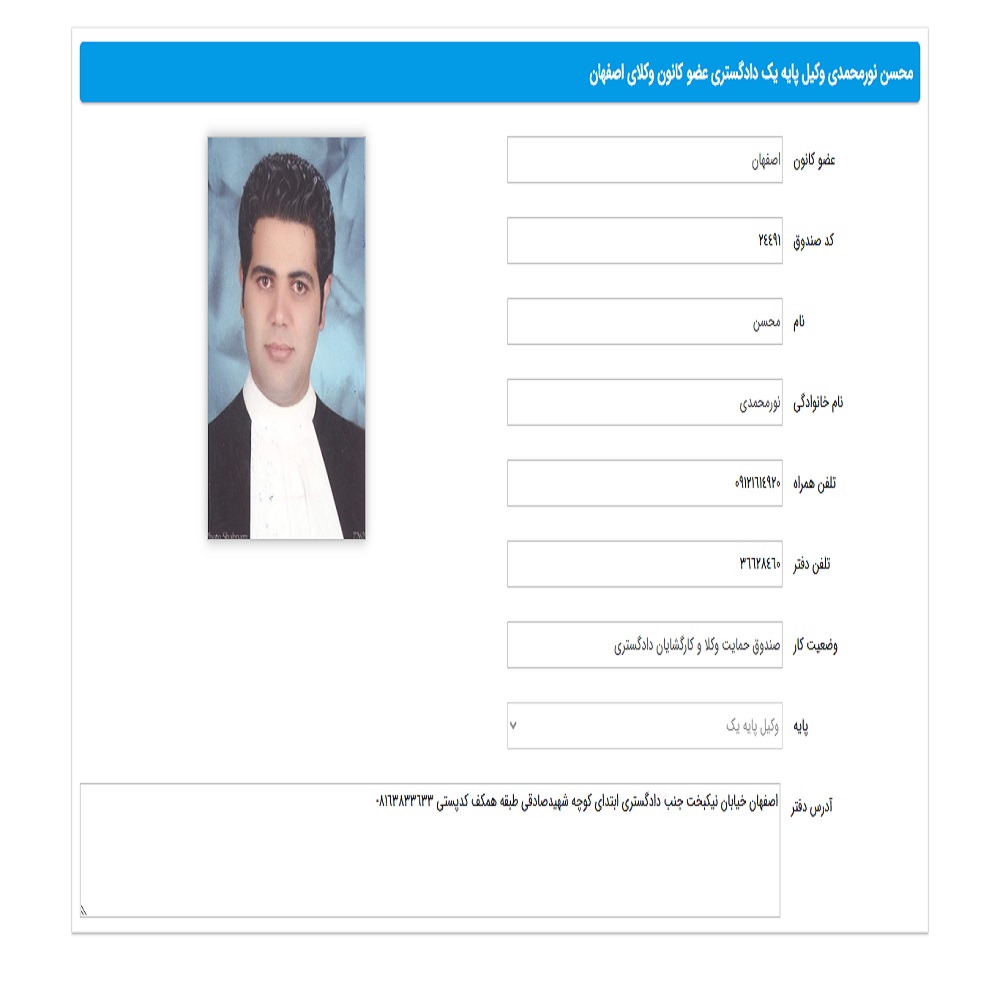| وکیل محسن نورمحمدی | خ نیکبخت | 09121614930 |