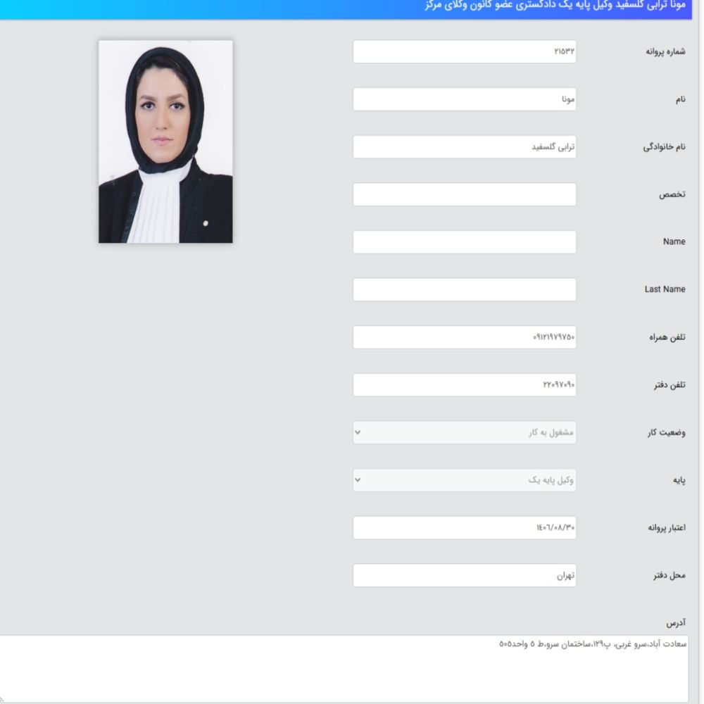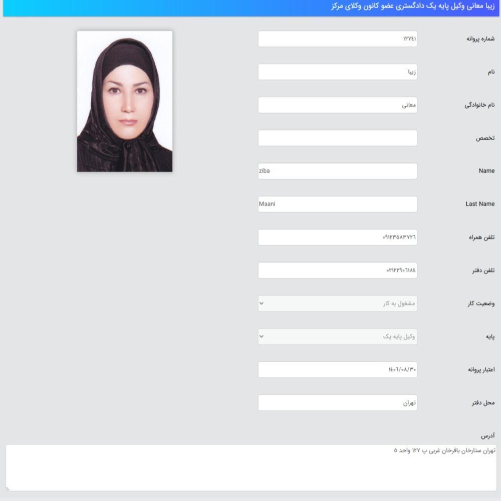 خانم زیبا معانی وکیل پایه یک دادگستری، مشاور حقوقی، فوق لیسانس حقوق تجارت بین الملل و نزدیک به 20 سال سابقه وکالت در انواع دعاوی حقوقی، کیفری، خانواده و ملکی دارند.