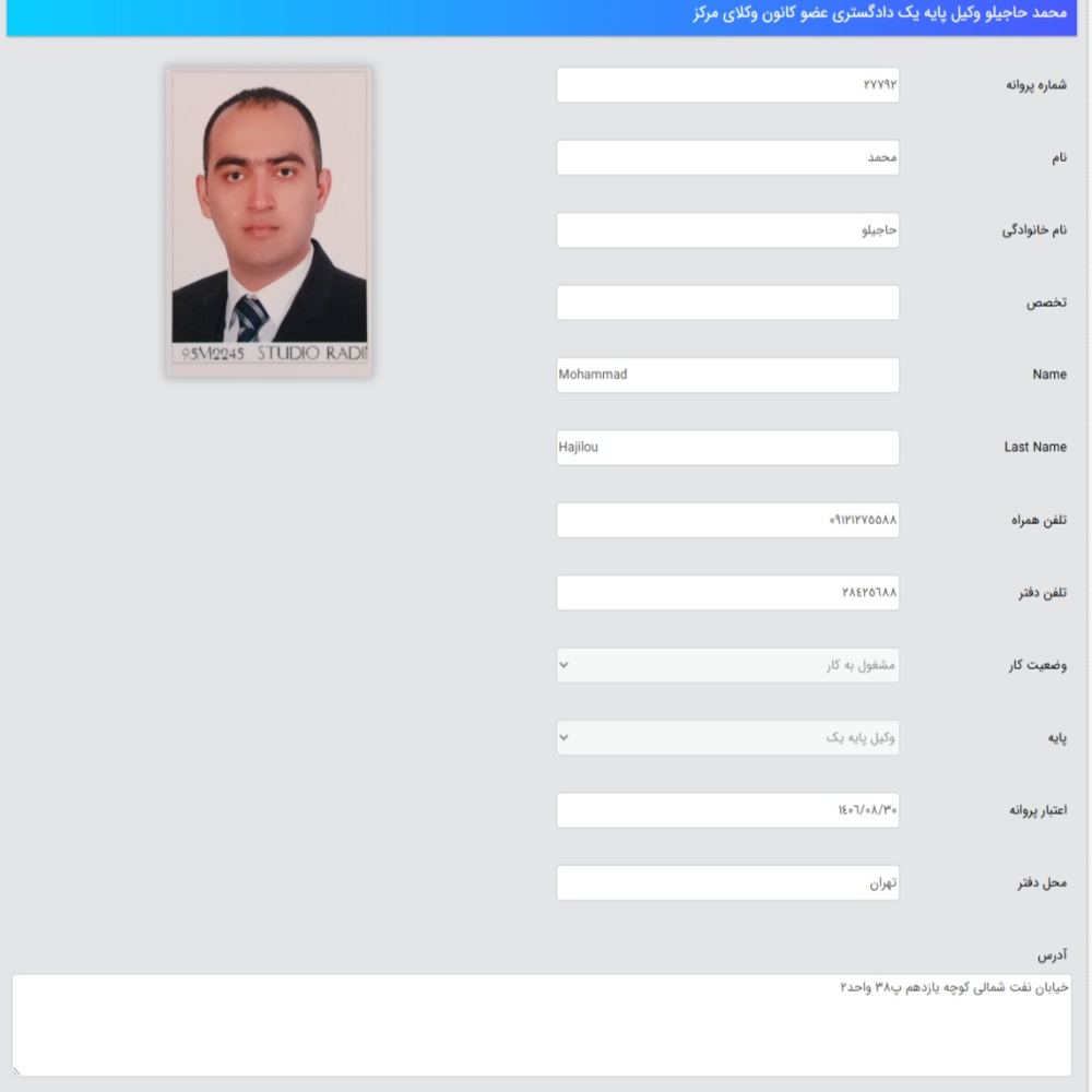 آقای محمد حاجیلو کارشناس ارشد حقوق خصوصی، وکیل پایه یک دادگستری و دارای یک دهه سابقه و تجربه در زمینه وکالت هستند. ایشان در زمینه مشاوره حقوقی نیز فعالیت می‌کنند. آقای حاجیلو با مجموعه‌هایی مانند: حلوا شکری عقاب(وکیل اعضای هیات مدیره و سهامداران)، انجمن ارتودنتیست‌های ایران، تهران کنیتکس و … به عنوان وکیل و مشاور حقوقی همکاری داشته‌اند.