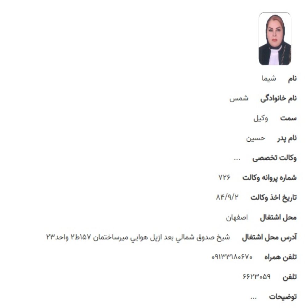 | شیما شمس | خیابان شیخ صدوق شمالی | 09133180670 |