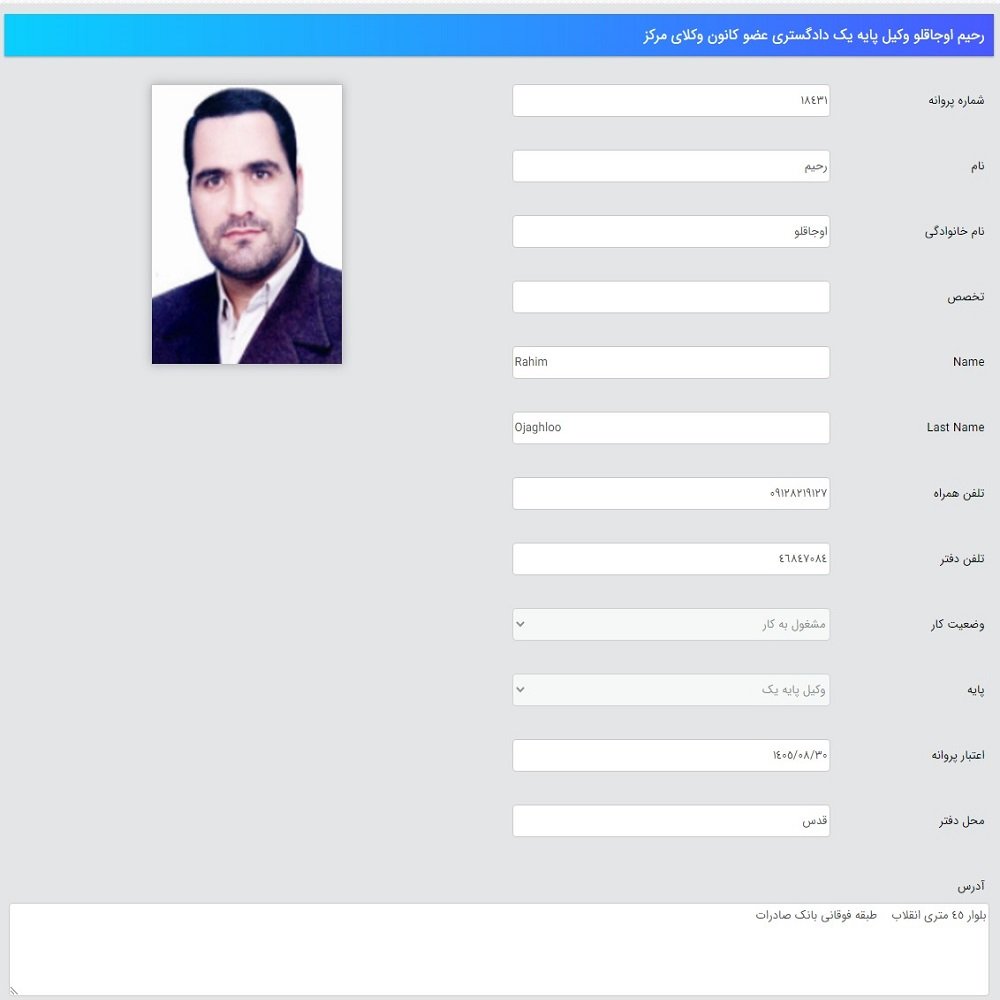 آقای رحیم اجاقلو، با بیش از پنج سال تجربه در حرفه وکالت، بهعنوان یکی از وکلای توانمند و فعال در شهر قدس شناخته میشوند. ایشان در امور کیفری و حقوقی مختلف از جمله پروندههای کلاهبرداری، سرقت و خانواده تخصص دارند. آقای اجاقلو با رویکردی حرفهای و پیگیریهای دقیق در تمامی مراحل پروندهها، توانستهاند موفقیتهای زیادی را برای موکلین خود به ارمغان بیاورند. ایشان از وکلای جوان و با انگیزهای هستند که در جامعه حقوقی محبوبیت بالایی دارند.