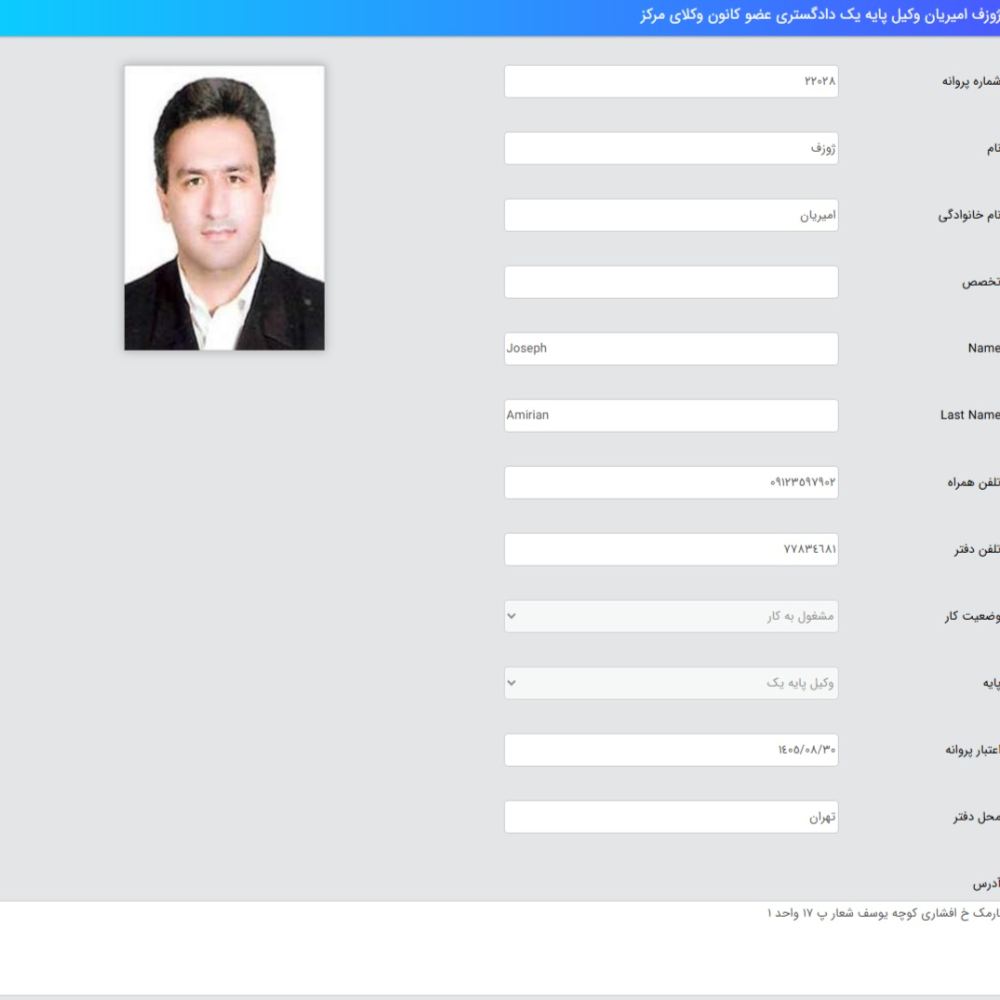 امیریان با آماده بودن برای ارائه خدمات حقوقی در دعاوی مختلف، به تمامی ساکنین نارمک و شهر تهران اعلام اراده میکند. ایشان توانایی پذیرش وکالت در موارد متنوعی از جمله دعاوی حقوقی، کیفری، دعاوی ملکی، دعاوی خانوادگی، وکالت ایرانیان خارج از کشور، ثبتی و شرکتی را دارند و با رویکرد حرفهای و پیگیری دقیق، به تامین حقوق موکلین خود میپردازند. ژوزف امیریان، وکیل پایه یک دادگستری و مشاور حقوقی، با فارغالتحصیلی از رشته حقوق و در اختیار داشتن پروانه وکالت پایه یک دادگستری، با بیش از ۱۲ سال سابقه حقوقی، از جمله بهترین وکلای منطقه نارمک شهر تهران شناخته میشود.