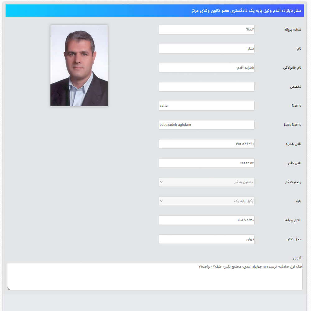 | ستار بابا زاده اقدم | فلکه اول صادقیه | 09121234360 |