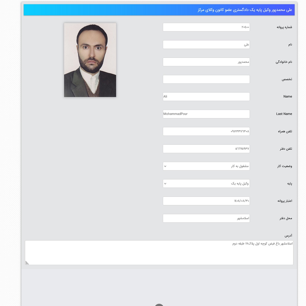 | وکیل علی محمد پور | شهرک غرب | 09121435686 |