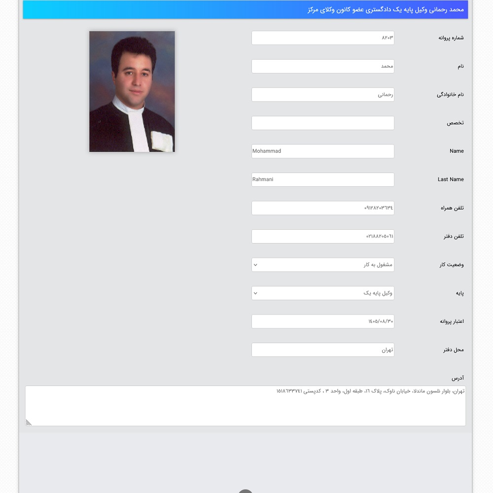 | وکیل محمد رحمانی | ولنجک | 09123759251 |