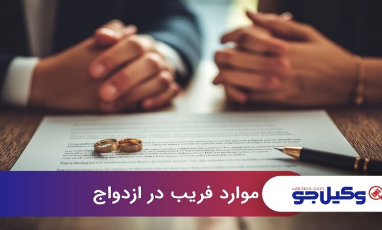 طبق نظر کارشناسان وبسایت وکیل جو، فریب در ازدواج شامل مواردی به شرح زیر است:
